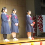 スライドショーや、新執行部による「早中生の主張」を皮切りに、1年生からは3年間の思い出を笑いあり涙ありで楽しませてくれたコミカルな劇を、2年生からは歌ありダンスありの、思いのこもった愛情たっぷりの劇を出し物として披露してくれました。