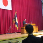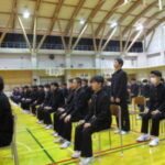 金川同窓会会長さんから目標を見付けることの大切さや、実践することの大切さをお話しいただいたあと、3年生は記念品を受け取りました。