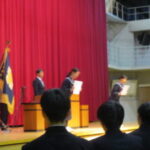 中文連表彰、中体連表彰、善行賞、社会をよくする表彰です。これは3年間スポーツに、文化活動に、みんなのために陰ひなたなく活動してきたことを賞されるものです。